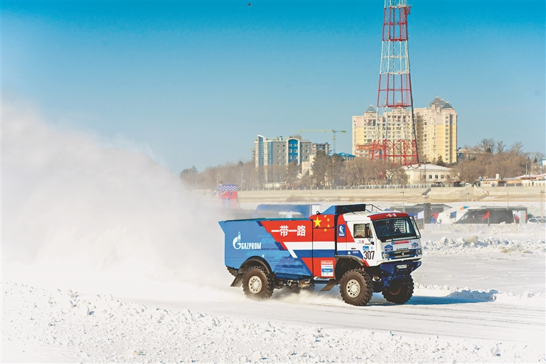 25日,中俄界江黑龙江国际冰雪汽车挑战赛在黑河市与俄罗斯阿穆尔州布拉戈维申斯克市之间冰封的黑龙江江面上举行。来自中俄两国的赛车、车手和爱好者汇聚于此,演绎了一场冰面上的“速度与激情”。