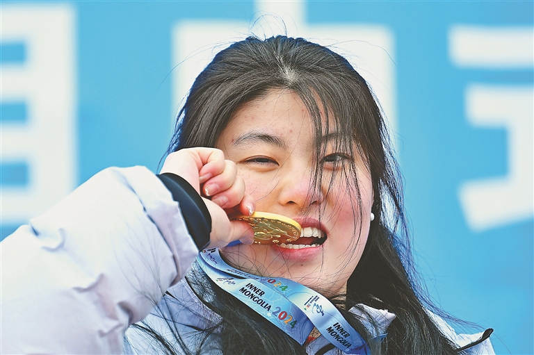 图④:23日,山西队选手苏翊鸣在单板滑雪公开组男子大跳台中夺冠。