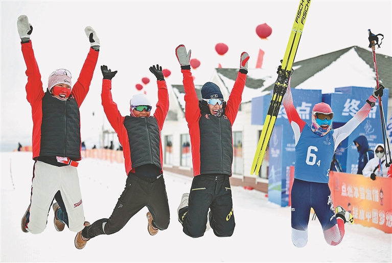 图①:21日,黑龙江队在越野滑雪公开组女子4×5公里接力(2传统技术+2自由技术)比赛中夺冠。