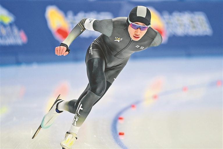 图③:25日,北京队选手丛振龙在速度滑冰项目青年组男子5000米A组决赛中夺冠。