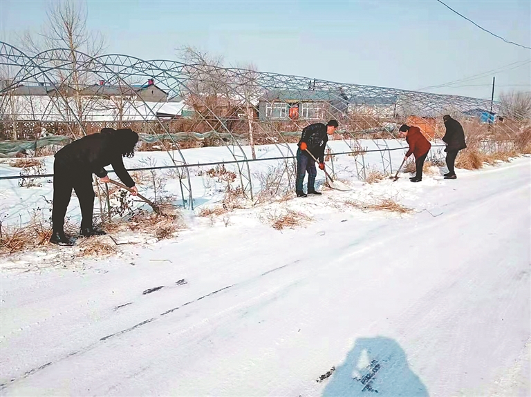 红卫村各家各户都挥舞着铁锹与扫帚,清运着积雪。“种子已经到了,化肥也快到了,等扣上棚,今年备春耕的底儿就打得差不多了。”村民们边清雪边对记者说。