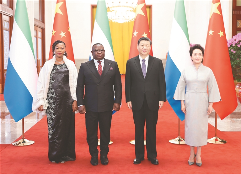 习近平指出,中非人民命运与共。中国始终把发展同非洲国家团结合作作为对外政策的重要基石。中方将秉持真实亲诚理念,加强同非洲国家相互支持和友好合作,将支持非洲工业化倡议、助力非洲农业现代化计划、中非人才培养合作计划同非盟《2063年议程》、非洲各国发展战略紧密对接,把中国的发展、非洲的发展、世界的发展进一步结合起来,推动中非合作提质升级,推动世界走向和平、安全、繁荣、进步的光明前景。中方愿同包括塞拉利昂在内的非洲朋友一道,办好今年的中非合作论坛会议,将中塞、中非友好发扬光大。
