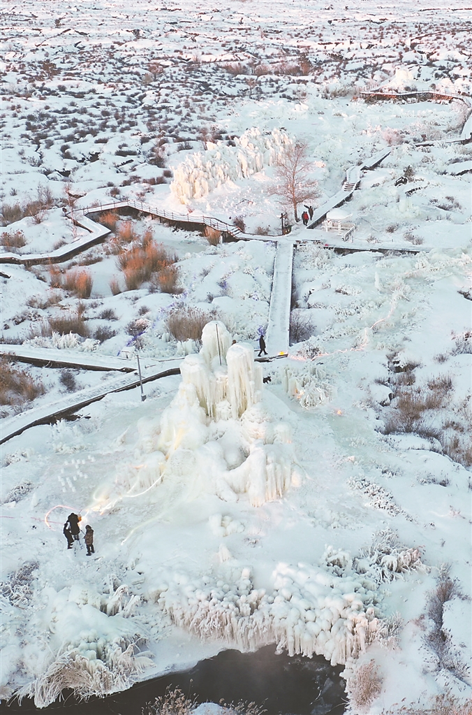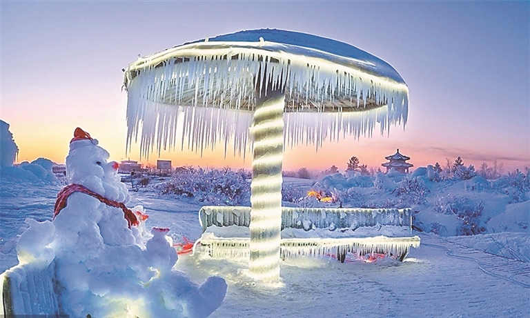 五大连池风景区不仅有令人神往的火山奇观,当地的冰雪景色也别具一格。由哈尔滨学院艺术与设计学院、创意设计产业学院注入资金并建设的冰雪创意设计产业项目——冰川雪谷乐园,为五大连池风景区再添异彩。 郭柏林摄