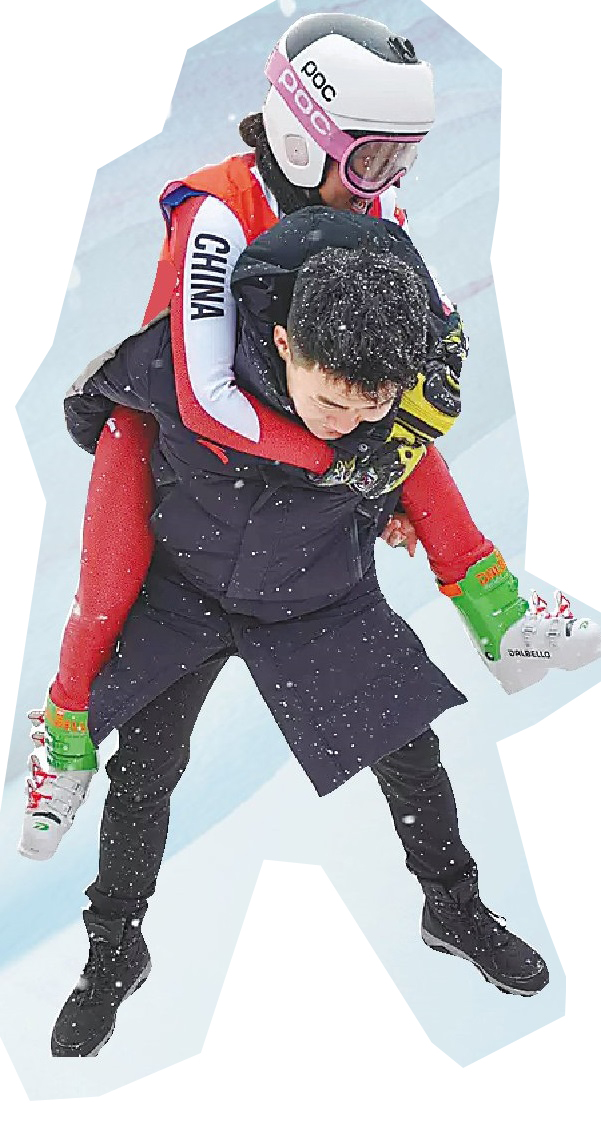 决赛开始,李雪莹再次滑行在雪道上。此时的她尽量让自己忘记左膝的痛,专注于动作要领,竟然就这样靠着一只脚,不但完成了比赛,还第一个到达终点,夺得金牌。冲过终点线后,李雪莹高兴得哭了起来,与教练李洋紧紧相拥。