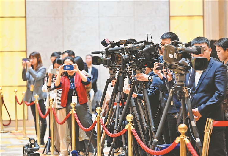 中外记者现场采访。本报记者 郭俊峰 张春雷摄