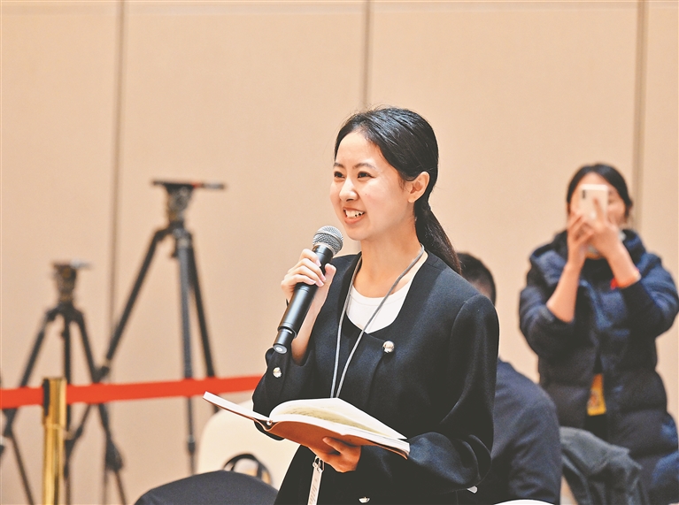 3月7日上午,出席十四届全国人大二次会议的黑龙江代表团举行开放团组活动。会议向境内外媒体开放,部分代表接受记者集体采访。本报记者 郭俊峰摄