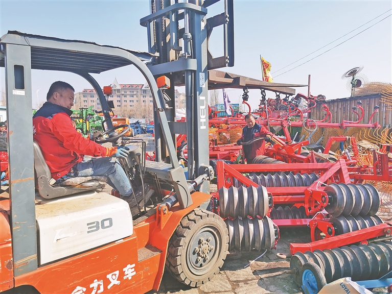 时下,农民们纷纷挑选农机,掀起备耕热潮。