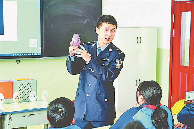 民警在给孩子们上禁毒课。本报记者 潘宏宇摄
