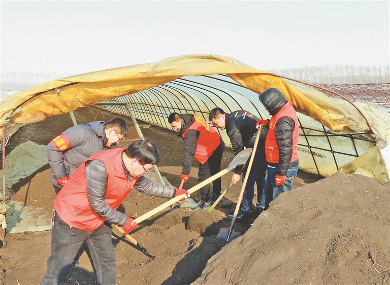 本报讯(记者潘宏宇)连日来,友谊县东建乡利用天气回暖有利时机开展备春耕志愿服务活动,帮助辖区种植户清理大棚积雪、抢筛苗床土,为早摆盘、早育秧、夺高产打基础。