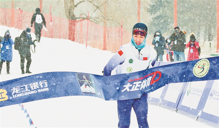 冬季铁人三项世界杯赛中冠军撞线场面。 图片由哈尔滨市体育局提供