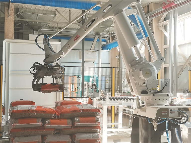 机械手臂对加工好的种子进行码袋。林存宝摄