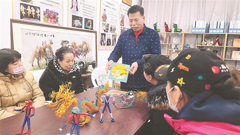 近日,一场精彩的非遗培训课在南极商圈内的一家非遗工作室举办。“先绘制好自己想要掐丝的图案形状,再用复写纸和压痕笔将图案描绘到你用到的载体上,比如说玻璃、陶瓷、葫芦、木板都可以,往图案上滴粘丝胶,再把金属丝粘到图案的线条上,这样大致的轮廓就出来了,接下来就是往图案里填充彩砂。”市级非遗掐丝珐琅画传承人王海春详细地为居民讲解掐丝珐琅画的制作过程。“退休后在家没啥事,赶上非遗培训,就想着学一项手艺挺好,学好了能制作装饰画、摆件、首饰等手工艺品,希望通过这项手艺增加家庭收入。”景阳社区居民王爱平学有所获。