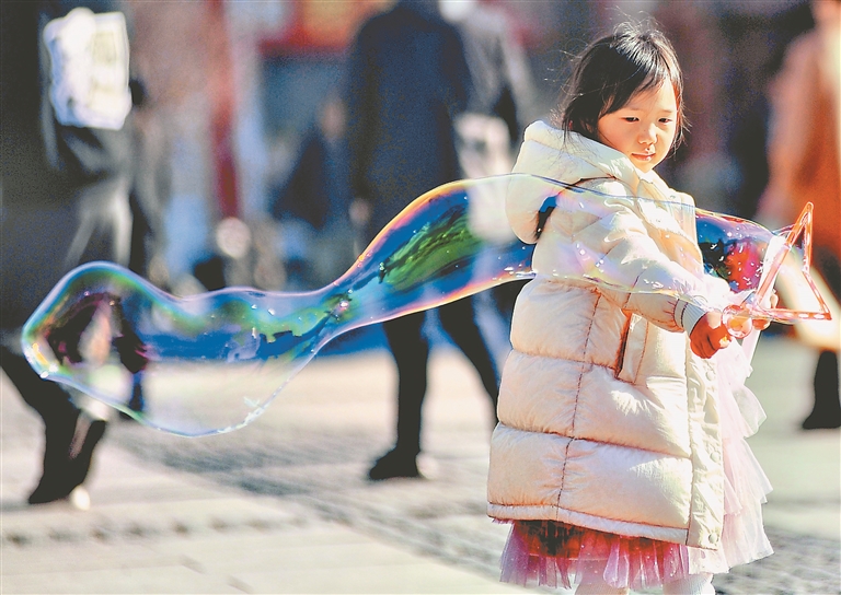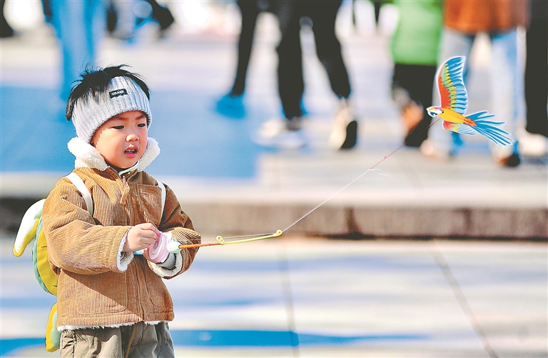 24日,阳光明媚,空气清新,哈尔滨市许多家长带着孩子外出游玩。在公园里、广场上和松花江畔,孩子们骑车、放风筝、玩滑板、吹泡泡……奔跑着,欢笑着,尽情享受着春天的美好。