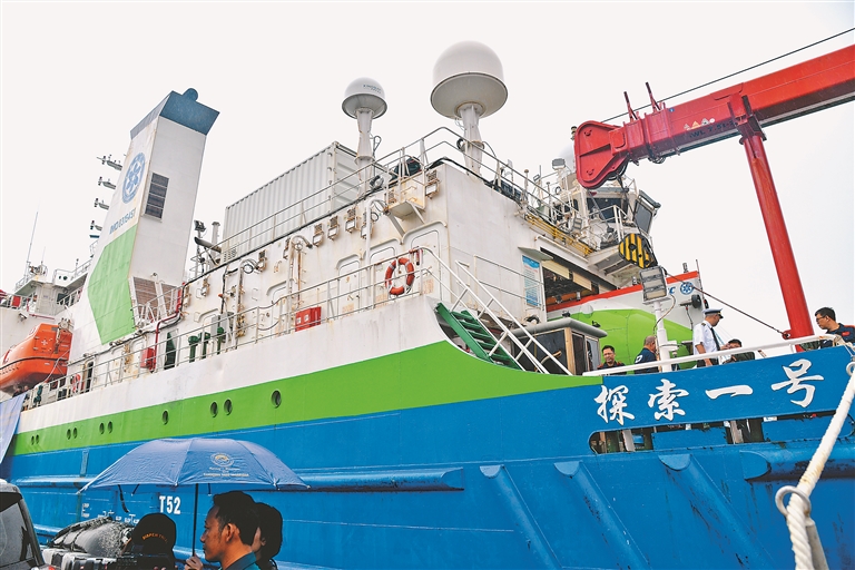 这是3月22日在印度尼西亚雅加达拍摄的停靠在丹戎不碌港的“探索一号”科考船。