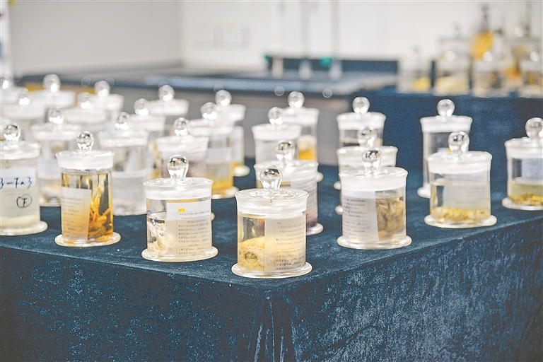 这是3月22日在印度尼西亚雅加达丹戎不碌港停靠的“探索一号”科考船上拍摄的爪哇海沟生物样本。