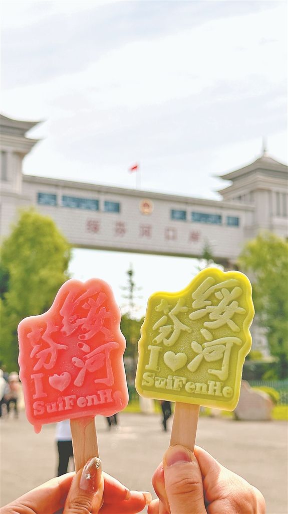 去年夏天,一款颇具设计感的雪糕在绥芬河市民的朋友圈中爆火,大绥冰棍厂推出的这款印有绥芬河标志的文创雪糕,给绥芬河市民和来旅游度假的人们带来全新的清凉体验,雪糕上印有“我爱绥芬河”字样,多种颜色吸人眼球。大绥冰棍厂在开发新品的同时,不断完善老式冰棍多种配方研发。总经理张宁对记者说,现在,绥芬河国门造型的模具已到货,今年五月还将继续推出绥芬河著名的人头楼、博物馆等地标建筑造型的雪糕。
