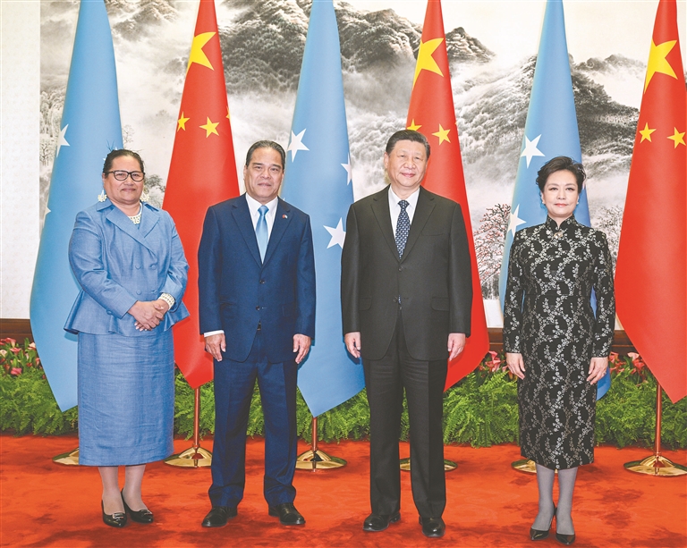 习近平指出,今年是中密建交35周年。两国始终相互尊重、平等相待,友好合作、互利共赢,增进了两国人民福祉。中方支持密方维护国家主权和独立,走符合本国国情的发展道路,振兴经济和改善民生。中方愿同密方一道,以两国建交35周年为新起点,保持各层级交流对话,加强各领域互利合作,推动中密关系迈上新台阶。双方要坚守两国全面战略伙伴关系的政治定位,坚持互利共赢、共同发展的合作基调,加快推进共建“一带一路”合作,加强基础设施项目合作,密切文化、卫生、教育、地方等人文交流。欢迎更多密克罗尼西亚联邦青年来华深造。中国地方“送医上岛”、“送戏下海”等项目深受密联邦民众欢迎,双方可以开展更多类似项目。中方愿在南南合作框架内向密方提供应对气候变化援助、开展能力建设培训。加强在联合国、太平洋岛国论坛等多边框架内协调配合,共同践行多边主义,维护公道正义。