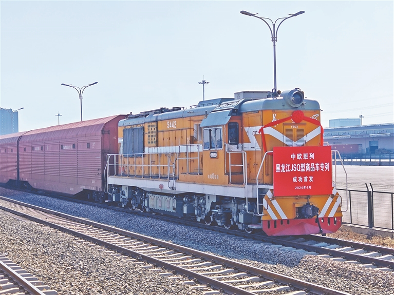 本报9日讯(记者王迪)9日,一列编组29节JSQ专用车厢,满载290台国产商品汽车的中欧班列从哈尔滨国际集装箱中心站始发,经满洲里铁路口岸出境驶向欧洲。这是我省开行的首趟JSQ专用车型商品车中欧班列,装运量提升一倍,商品车安全也更有保障。