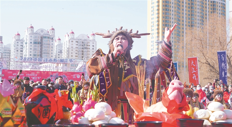 “歌舞表演让人特别震撼,我们都感觉很激动。”市民们纷纷拿出手机,记录下每一个场景。摇动的彩旗、震颤的鱼皮鼓承载着所有人对未来的祈愿和祝福。