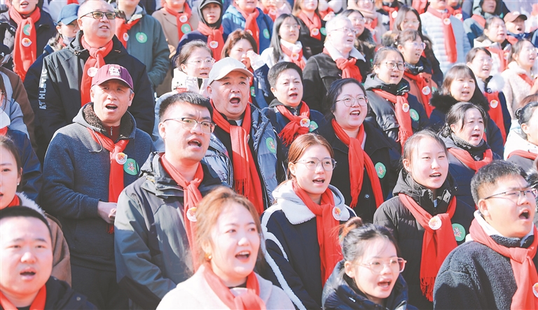 市民在活动现场齐“喊江”。 本报记者 刘心扬摄