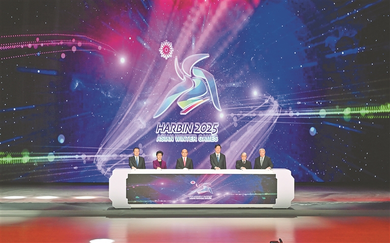 13日晚,哈尔滨2025年第九届亚洲冬季运动会倒计时300天主题活动在哈尔滨大剧院举行。许勤、高志丹、梁惠玲、霍震霆、于再清、于洪涛按下启动按钮,共同启动“亚冬会倒计时300天”。本报记者 郭俊峰摄