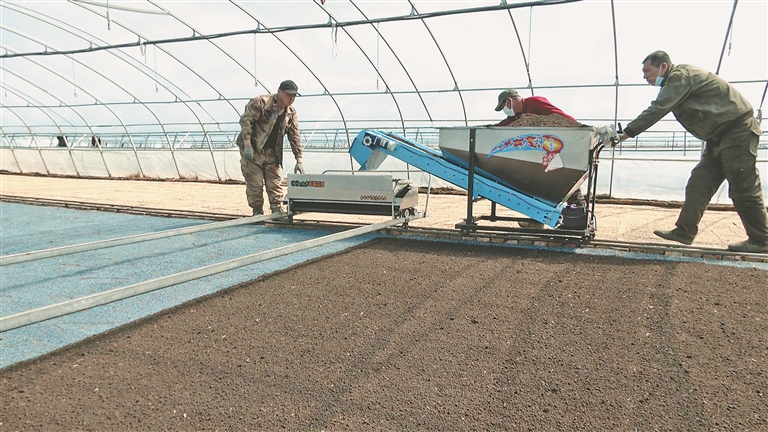 10日,鸡东县鸡林乡永光村金达莱农业机械化水稻专业合作社标准化育苗小区内60栋水稻育苗大棚全部播种完毕,比往年提前了5天。工人们把棚室封闭,静待育秧盘里的水稻秧苗破土而出。