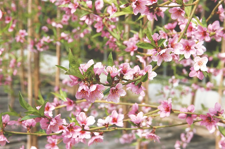 纯洁的樱桃花让人流连忘返,粉色的桃花更让人心动不已。在汤原县胜利乡合力村的温室大棚里,粉嫩的桃花开满枝头,在青翠欲滴的绿叶映衬下更显娇媚。不少游客被这儿的桃红“拴”住了脚步,赶紧趁着假日来和美美的桃花合影,花期时游客量能达到平时的3倍多。
