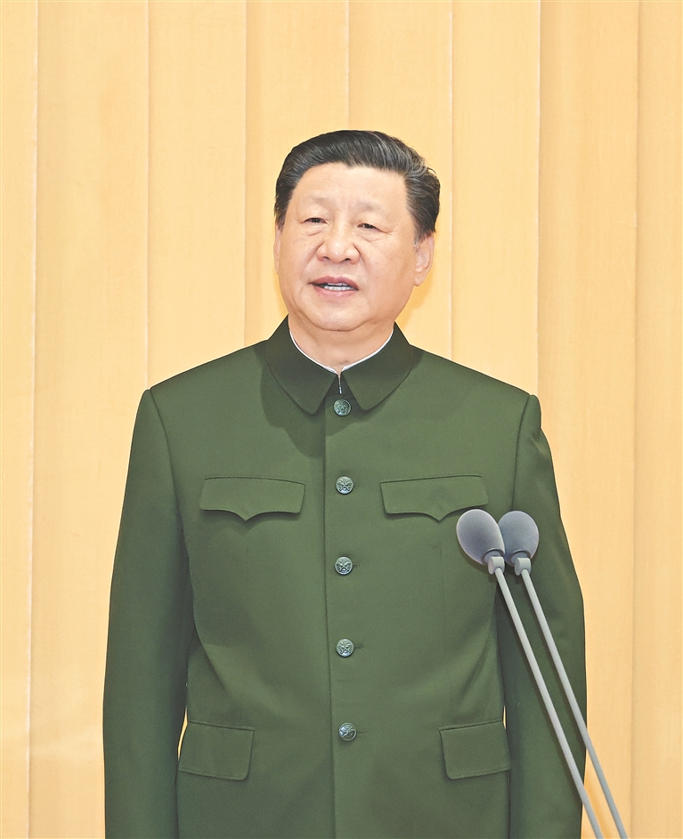 4月19日,中国人民解放军信息支援部队成立大会在北京八一大楼隆重举行。中共中央总书记、国家主席、中央军委主席习近平向信息支援部队授予军旗并致训词。这是习近平致训词。新华社记者 李刚摄
