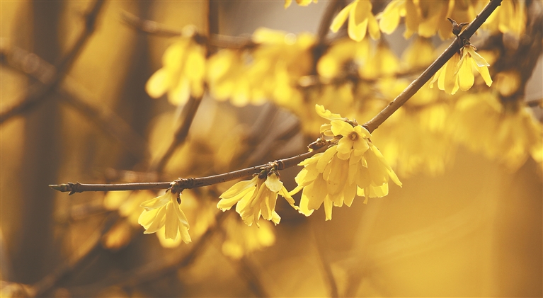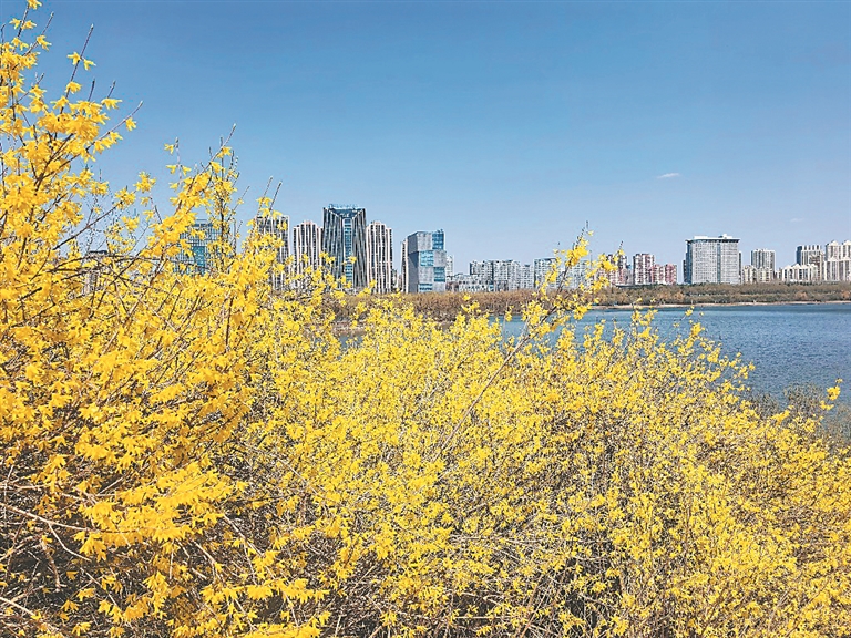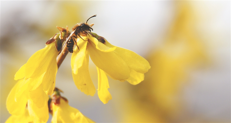 近日,哈尔滨市街头的一丛丛连翘花开。金黄色的花朵,在明媚的春光里灿烂耀眼,匿迹半年的各种蜂蝶、瓢虫纷纷出现在花丛间。连翘是哈尔滨城区最早开花的木本植物,它的盛开标志着冰城春天的到来。