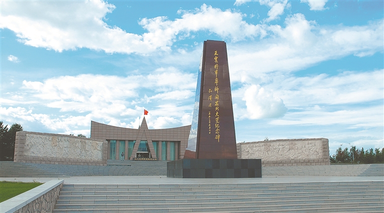 进入纪念园区,远远望见一座红色丰碑巍峨屹立,碑身正面“王震将军率师开发北大荒纪念碑”金色大字熠熠生辉,背面镌刻着概述北大荒艰苦卓绝创业历程的碑文,瞻仰诵读,顿觉心怀激荡。