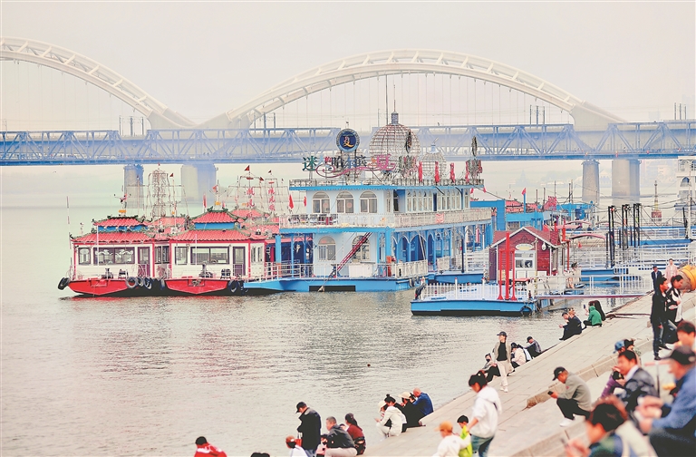 据了解,随着天气不断转暖,再过几天,游船轮渡将正式通航,届时,游人将可乘船游江或前往江北游玩。