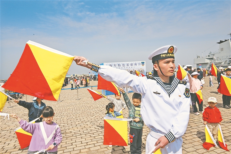 连日来,2024年海军成立纪念日舰艇开放活动在青岛举行。开放的舰船多数参加过亚丁湾护航、出国访问、联演联训等重大任务。预约前来参观的市民游客络绎不绝,人们不仅能登舰参观,还能与海军官兵面对面交流、参加军事特色科目体验、了解海军特色文化等,零距离感受人民海军舰艇的风采和魅力。