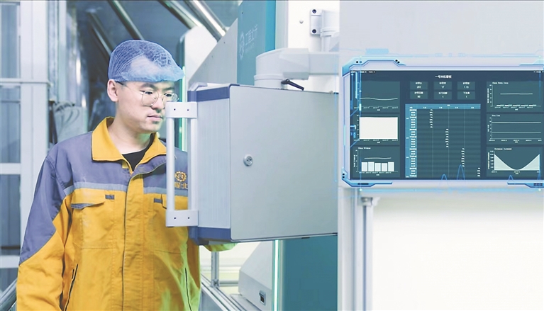 工程北米技术人员查看生产线智能参数。 图片由受访单位提供
