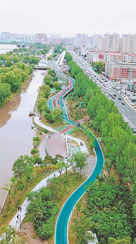 大庆的滨水绿道景观。