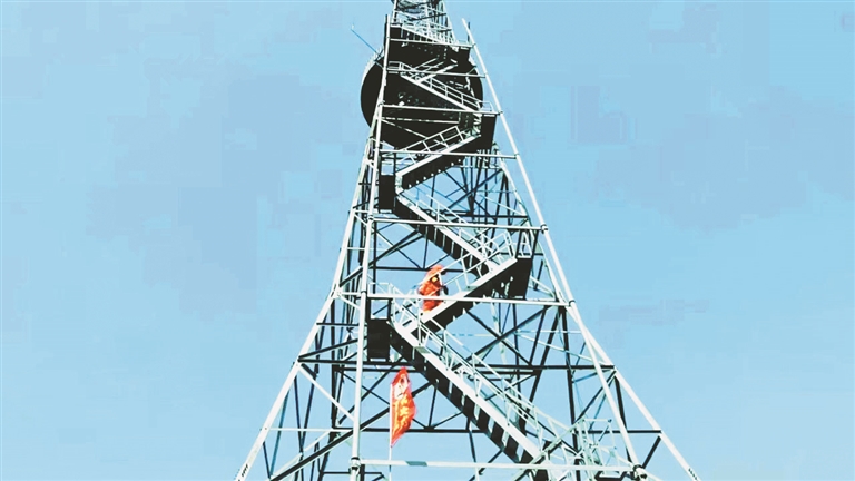 廖国忠说:“第一次上塔的时候,真的是硬着头皮上去,心里慌慌的。现在上下塔,扶着把手,小跑都行。”跟一般的楼梯不一样,瞭望塔的楼梯是镂空框架结构的,风大时人也跟着左右晃动,摇摆的幅度让人心惊胆战。