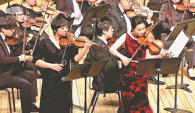 双小提琴与乐队演奏。本报记者 蒋国红摄