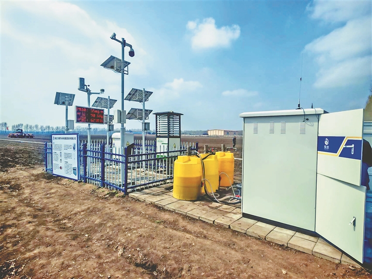 在耕地的一边,一台带有天线的大型设备格外引人注目,据工作人员介绍,这是水肥一体化智能控制系统,示范园区内采用浅埋滴灌水肥一体灌溉施肥技术,通过智能控制系统及浅埋的滴灌管,可以将肥料和水均匀、定时、定量地供给作物,实现根系局部微灌、精准施肥,既提高了工作效率又提升了水肥的利用率。