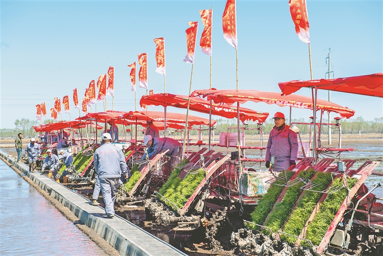 万物苏萌,春光正好。走进王震将军点燃第一把荒火的北大荒农垦集团牡丹江分公司八五〇农场,黑的是龙江沃土,绿的是标准化秧苗。无人机蜂鸣升空,智能导航水稻插秧机队呈雁字形行进。天地纵横,人机互动,一幅科技春耕图壮美铺陈……