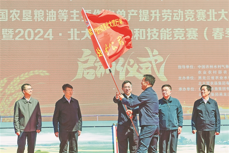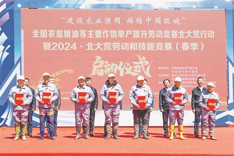 5月7日, 由黑龙江省农业水利气象工会、北大荒农垦集团有限公司工会联合主办,牡丹江分公司承办的“建设农业强国 端稳中国饭碗”全国农垦粮油等主要作物单产提升劳动竞赛北大荒行动暨2024·北大荒劳动和技能竞赛在这里燃动龙江田野。