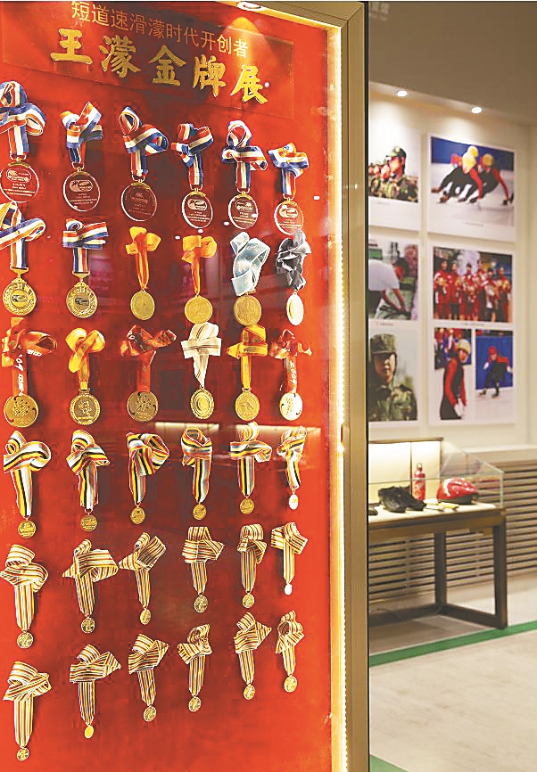 短道速滑冠军馆内展示的王濛获得的金牌。