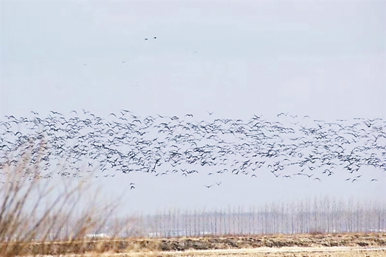 候鸟集群回归,是对北方的眷恋?是对北方的情有独钟?“万里长空结队行, 青山绿水寄衷情。南来北往志坚定, 暴雨狂风心不惊。”这些候鸟们的心中也揣了份独有的情愫,通过时间的隧道把真正的春天捎来,助力北方来驱赶坚冰,把最姣好的倩影投入水色湖光……