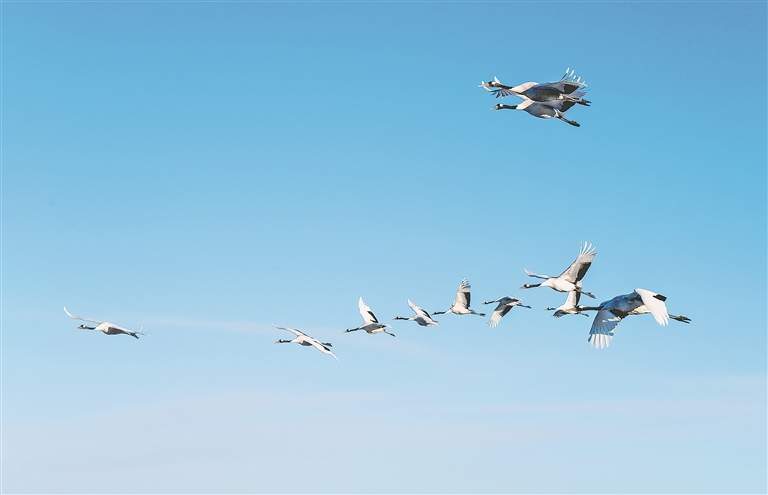 候鸟成队飞翔在林区上空。图片由受访单位提供