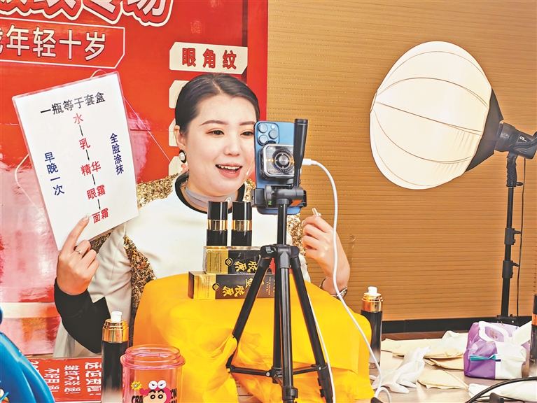 咔诗迪曼投资集团有限公司项目经理孟祥楠介绍,公司现在分为三个板块运营,电商板块主要销售美妆产品,每天营业额5万至8万元;线上数字人直播,一个账号大概每天收入3万至5万元;抖音达播账号,每天3个主播累计销售8万至15万元。