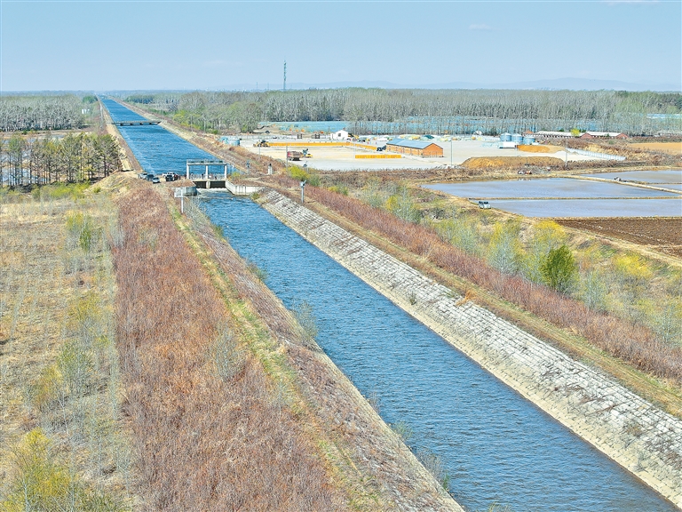 黑龙江江水沿着灌渠一路奔向江滨分公司的稻田。刘泽峰摄