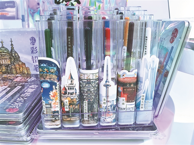 “‘尔滨’爆火,八方客来,除了带点哈尔滨特产,还能带走啥?我们带着这些思考,创新设计了奇趣哈尔滨—打卡攻略系列产品,涵盖哈尔滨24个知名景区景点。只要用手机轻触彩色铅笔的包装盒,就能沉浸式游‘尔滨’。”尚志市珍珠笔业有限责任公司市场运营主管沈莹介绍,公司生产的全芯无木笔市面稀有,之前一直出口,在欧美国家热销,这两年参加哈洽会,大受欢迎。彩色铅笔不仅适合孩子们书写、绘画,成人解压,还可以作为文创产品送人。展品从实用性上可分为水溶的、油性的、石墨的和碳化的四种,从设计上可以分为奇趣哈尔滨系列、奇趣哈尔滨—打卡攻略系列、中国韵系列和音乐节系列,可满足不同人群需求。