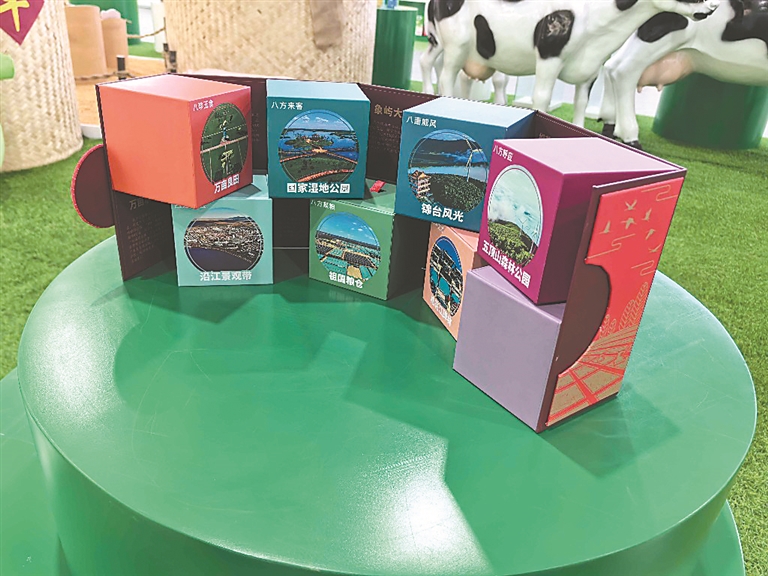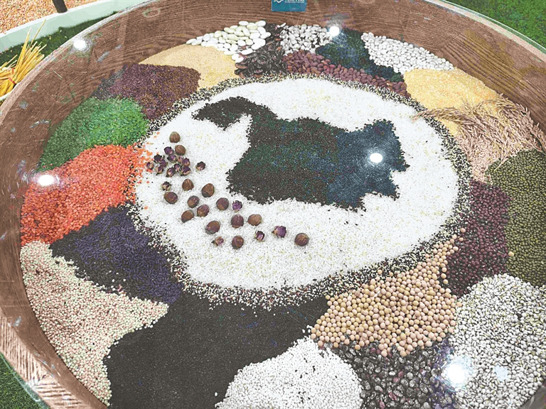在黑龙江省秋悦生态食品有限公司展台前,每款产品包装上都印着手绘的大米插画,在各式各样的商品中,来来往往的人一眼便能识别出这是主营大米展台。销售人员介绍,包装的设计理念是让大米产品回归到应有形态,极简体现卖的是什么产品,打造消费者简化的消费体验。