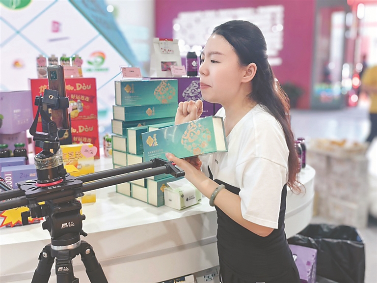 21日,展会落下帷幕,E馆成果丰硕。乔府大院、御膳田、云宴三花猪、孙吴肉牛、龙科种业、农投食品集团、九三集团、飞鹤乳业等知名品牌进行现场推介达20场次,众多网红达人前来探馆,主办方组织的多场直播带货活动,仅蓝莓果酱单品线上销售额累计达到236.8万元,收获“1000万+”网络流量。