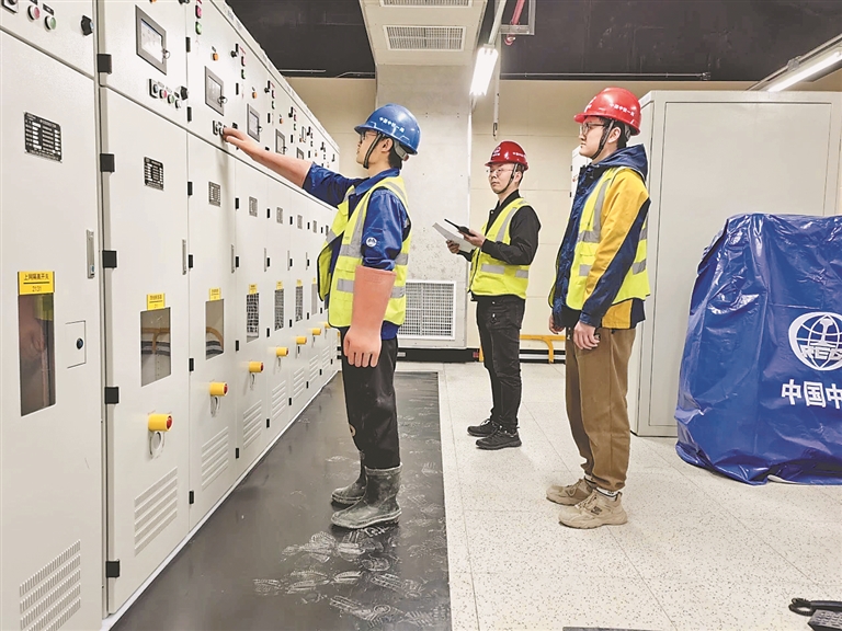 工作人员为接触网送电。 本报记者 邢汉夫摄