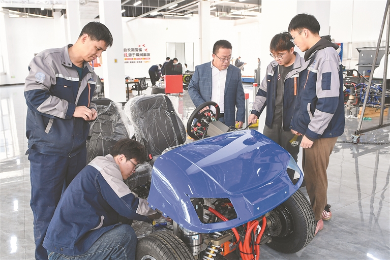 车间里,焊花四溅,由长春工业大学和吉林省百浪汽车装备技术有限公司联合开发的多车型门槛前部输送设备,快速地将汽车前门槛送到焊接线上,实现了不同车型白车身侧围前门槛的快速定位及传输。以此为代表的系列技术成果提高了企业生产线的自动化程度和产品质量,节约了企业成本。