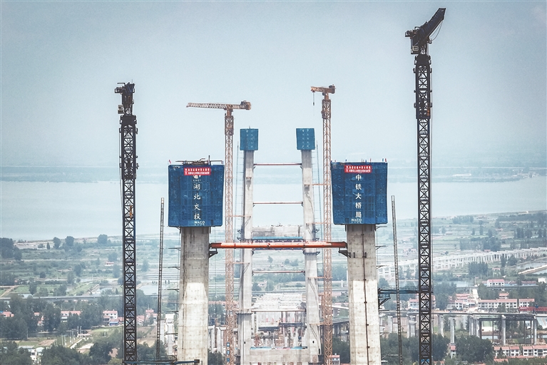 5月24日,由中铁大桥局集团负责施工的新港高速公路双柳长江大桥南主塔完成封顶。新港高速公路双柳长江大桥及接线工程连接武汉新洲区和鄂州华容区,是武汉城市圈环线的重要组成部分,大桥采用双向八车道建设标准,设计速度120公里/小时。这是在湖北省鄂州市拍摄的新港高速公路双柳长江大桥南主塔施工现场。
